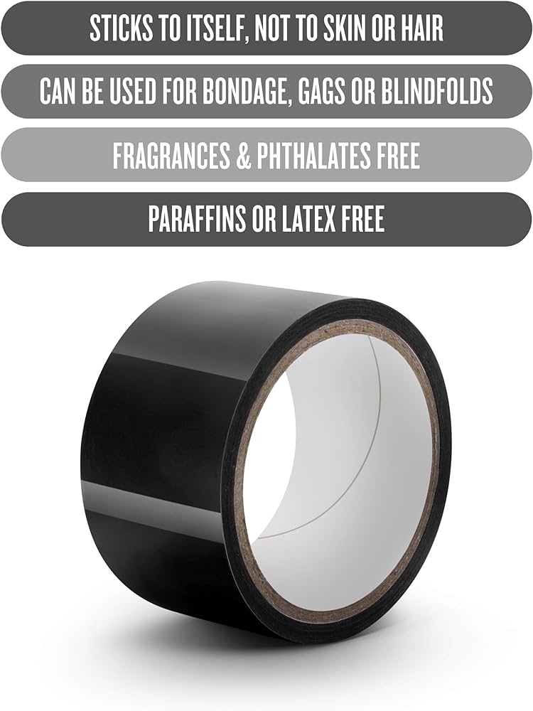 Get creative with this sensual, reusable bondage tape that sticks to itself but not to skin or hair. This light weight tape is an ideal way to create blindfolds, gags, or to bind your lover to any surface without the mess of adhesive tape. It’s perfect for spontaneous play, easy to use, and a fun way to expand your dominance and submission play! Pair with our Bondage Safety Scissors to ensure you are always ready to care for your bound partner.