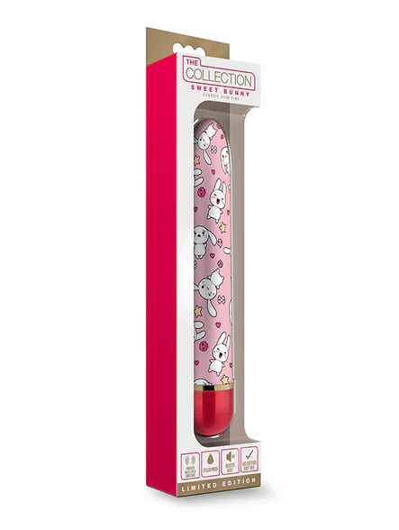Who knew pleasure could be this cute? The Collection vibe is a perfect gift for yourself or your lover. This limited-edition vibe will make you smile with joy with every use. The classic slim design is quiet, discreet, multispeed vibrations, and a smooth casing will deliver lots of sensation. Splashproof. Easy to clean. Body safe, and free of phthalates. Requires 2 AA batteries. (Not included.)