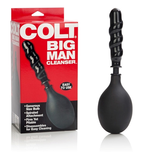 The Colt Big Man Cleanser from Cal Exotics is easy to assemble, clean, and use. The firm yet pliable spiraled cleanser probe, matched with a generously sized EZ squeeze bulb combine for the perfect cleanser. Bigger is better! Phthalate free PVC. 6x 1.5/ 15 cm x 4 cm (probe); 3.5 x 6/ 9 cm x 15 cm (bulb).