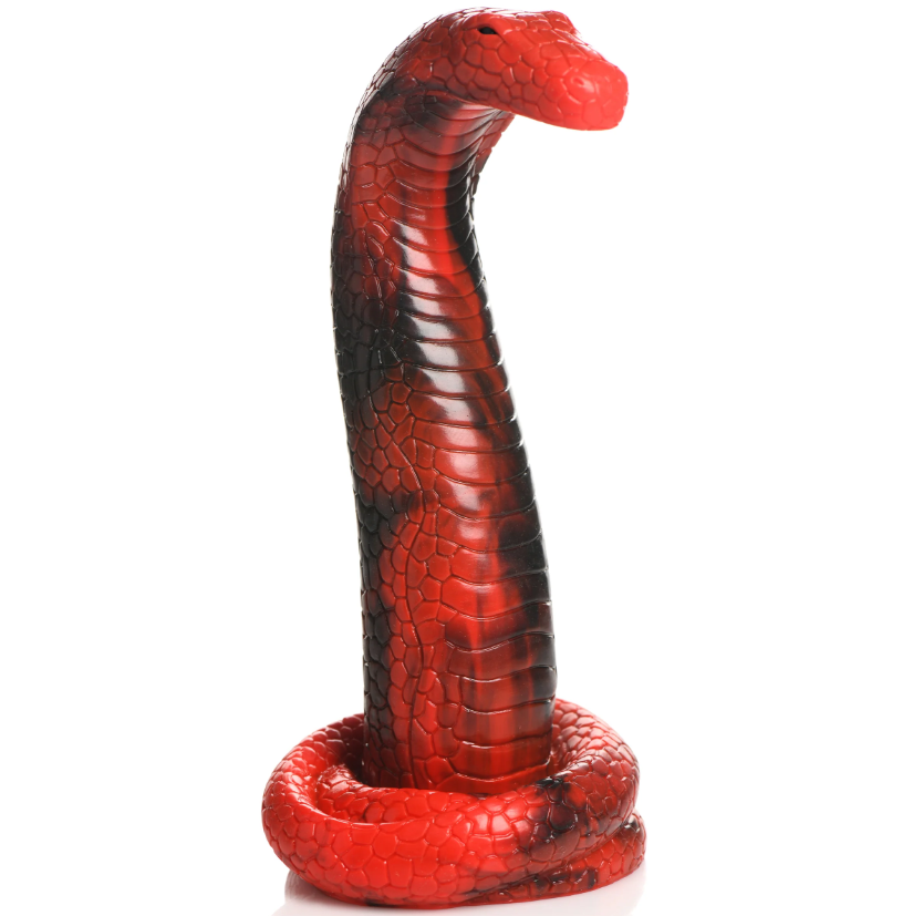Uncoil the mysteries of this sensual serpent while exploring new sensations of pleasure! As it slithers into your den, the tapered tip of its head makes insertion easier while the unusual shape of its body and texture of the scales add stimulation you’ve never had before! The curve of its neck presses against your most sensitive spots as it moves inside. The red and black snake is girthy and long with a firm yet flexible body. Made out of smooth and slightly tacky premium silicone, it is phthalate-free and body-safe to use with water-based lubricants. Enjoy riding it hands-free when you press the strong, suction-cup base against any flat surface! Combine it with a strap-on harness of your choice for partner play! Whether for fantasy roleplay, kinky Cosplay or just to experience something new, this Creature Cocks dildo is the perfect addition to your toy collection! You can even put it on a shelf and it will look like nothing more than a toy snake. No one else has to know how you play with it. After use, make sure to wash it with warm water and mild soap, then spray it with a toy cleaner and let it air dry.
