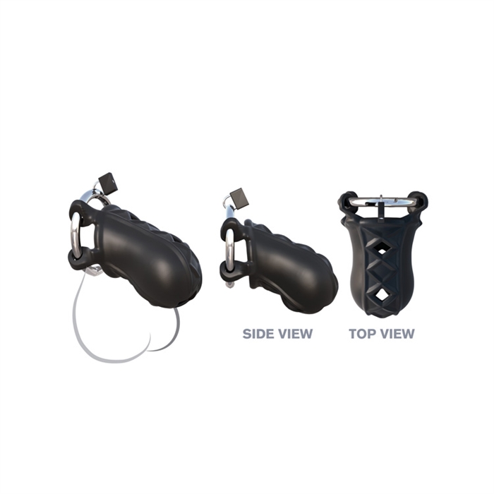 The silicone cage is easy to wash, body-safe, and super hygienic. The vent holes allow you to clean your subject’s package while they still wear the cage, and the ring is made from high-grade stainless steel. The silicone sleeve has a small pee-hole to assist urination, and the entire device can be worn under clothing for amazing one-of-a-kind thrills!