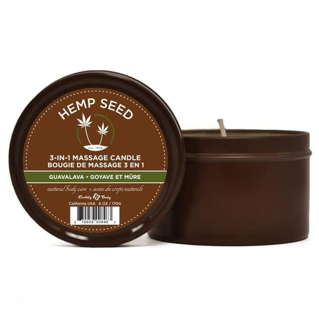 Specially formulated to melt a couple degrees above body temperature, our 3-in-1 Hemp Massage Candle doesn’t just provide romantic light and fragrance – the melted wax can also be used as a moisturizer or warm massage oil. Hemp seed oil, the primary ingredient in these candles, has a fantastic slip factor for massage and, because it sinks into the lipid layer of the cells, skin is left soft and moisturized, without any greasy feel.