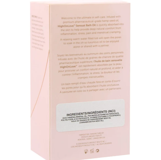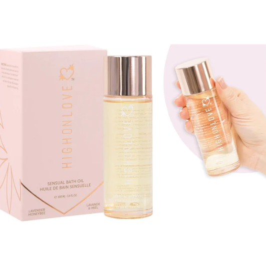 How to use: Draw a bath for yourself or to share with a romantic partner and soak it all in. Add a small amount of the HIGHONLOVE™ oil. The oil will disperse in water and will create a milky bath. Will not leave a greasy film on the bath tub.