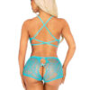 The matching boy shorts bring the charm with a playful front keyhole and an even cheekier one in the back, finished with sweet satin bow details for that perfect mix of cute and sexy. Whether you’re slipping into this set for a steamy night in or layering it under your favorite outfit, the bold turquoise hue guarantees all eyes will be on you wherever you go.