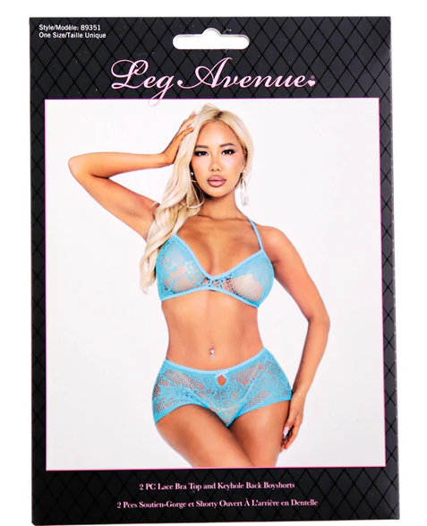 Show off your curves with the Leg Avenue 2 Piece Lace Bra Top and Keyhole Back Boyshort set. This dreamy duo is all about embracing your inner vixen with style and confidence. The delicate floral lace and mesh design hug your body in all the right places while giving just the right amount of peekaboo flair. The bra top features a deep v-neck and a strappy halter back that lifts and highlights your bust beautifully.
