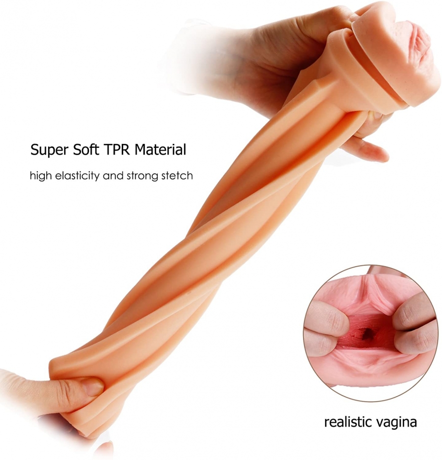 - Made of high quality TPR material,which is super soft and supple,flexible and odor free. Total Length:10.5Inches, insertable Length:8.5 Inches.A sample pack of lube is included with each masturbator stroker.