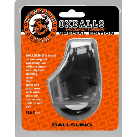 The ball-splitting Ballsling from Oxballs is like the original cocksling but with built-in ballring that separates the balls while also pushing them forward. Made of Oxballs’ special FLEX-TPR that is soft to the touch, phthalate free, and super strong and stretchy.