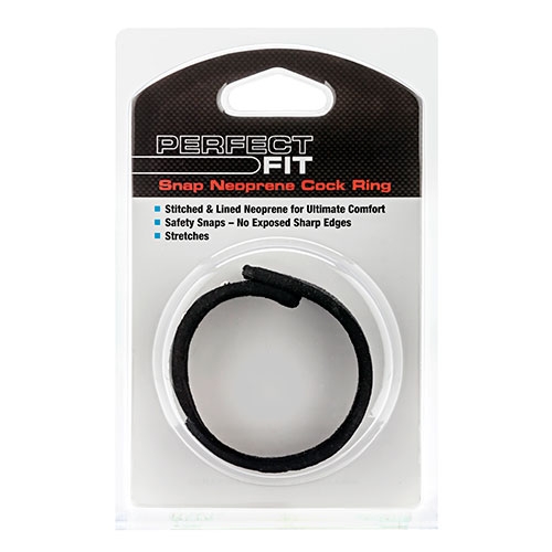 The easy to use Neo Ring is one of the most comfortable cock rings on the market. With four individual snaps, you can easily and securely adjust the size of the ring as your dick gets bigger. The snaps are very durable and fit very tight so you don't have to worry that it might come off during sex. There are no sharp edges and the neoprene material is extremely comfortable with just the right amount of give, so it doesn't