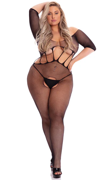 Amplify your desire with this sexier-than-ever bodystocking from Pink Lipstick! Featuring an all-over fishnet design met with large keyhole cut-outs in the middle to show a little more skin. The bodystocking is also crotchless for easy access and added sex appeal!