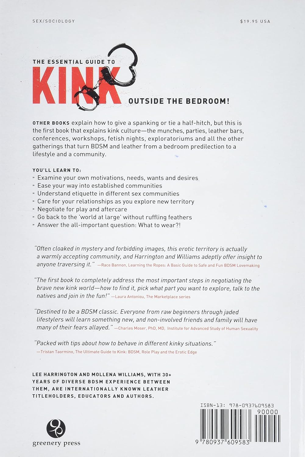 While there are plenty of other books out there that explain how to give a spanking or tie a half-hitch, Playing Well With Others is the first book that explains kink *culture* — the munches, parties, leather bars, conferences, workshops, fetish nights, exploratoriums and all the other gatherings of kinksters that turn BDSM and leather from a bedroom predilection to a lifestyle and a community.