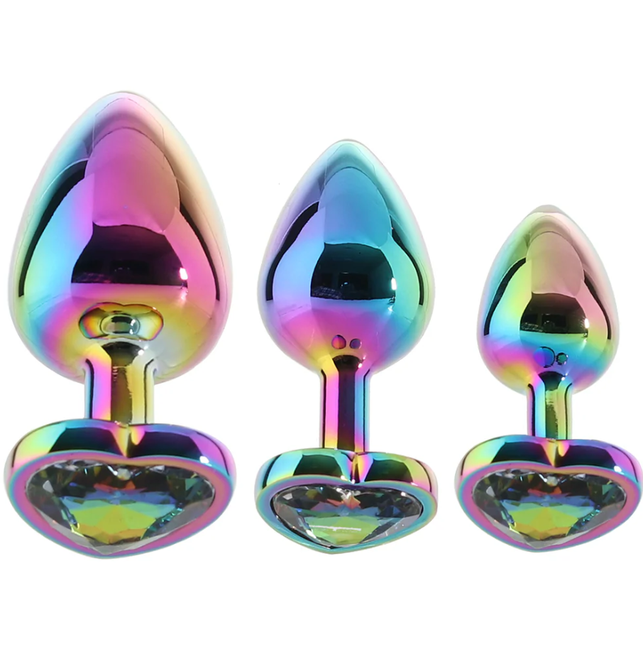 Enjoy the Rainbow Heart Gem Plug Set for passionate anal play again and again!