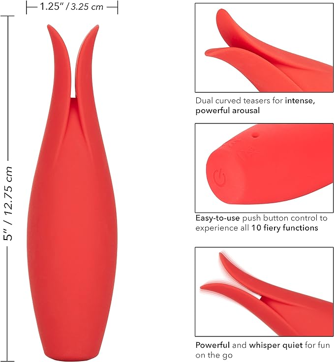 Each Red Hot ignites from a rechargeable, lithium ion battery that will fan the flames of eternal ecstasy. A universal USB cord is included along with a one-year warranty. It’s easy to use and whisper quiet, so your pleasure can be as private as you are. Share with a partner or use solo, either way this 100% waterproof, easy to clean massager is yours to enjoy.
