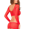 This stunning body stocking features a crochet pattern on both the top and the bottom. The low rise microskirt is designed to hug your hips and offer a flattering view of your waist. The quarter sleeve top has a v-neckline with the perfect crop so you can accessorize as much as you’d like.