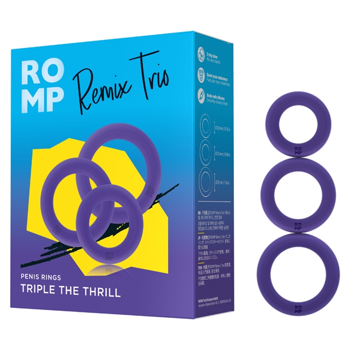 ROMP Remix Trio packs a selection of three durable, super stretchy non-vibrating penis rings to support staying power and harder erections. Made to fit all sizes and shapes, wear one, two or all three in different shaft and testicle combinations for solo and partner approved pleasure… |