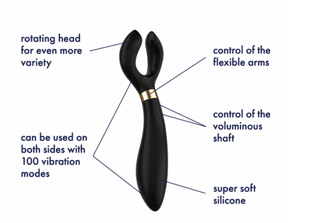 The movable head of the Satisfyer Endless Fun can be rotated through 180 degrees, meaning you can include this versatile sex toy in all your games and every position! If you’re enjoying some solo “me time”, this joy-bringer can be used to skilfully stimulate the clitoris, nipples or labia, or applied to the base of the penis or the glans to provide tingling vibes. If you’re enjoying some “his ‘n’ hers” time, he can also stimulate her vaginally or anally with one of the two shafts. Of course this toy is also perfect for “his ‘n’ his” and “hers ‘n’ hers” climaxes: she can insert one of the movable arms while she penetrates her partner with the voluminous shaft. The Satisfyer Endless Fun can also be placed on the penis shaft during anal intercourse – guaranteed to drive you both wild with pleasure!