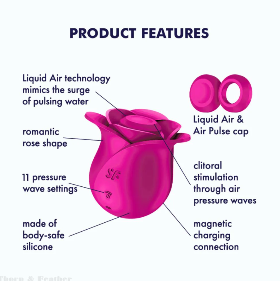 If you’re a romantic, then this device is for you: The Satisfyer Pro 2 Modern Blossom is a stunningly designed love toy that combines beauty with the most innovative technology. Featuring the beloved Satisfyer Air Pulse technology, the vibrator stimulates your clitoris without touching it, giving you incredible climaxes. But there’s even more: The Satisfyer Pro 2 Modern Blossom comes with an additional Liquid Air cap to indulge your pleasure spot with a sensation similar to the feeling of pulsing water. Pick your favorite setting out of 11 pressure wave programs, ranging from a petal-like caress to deep, intense sensations.