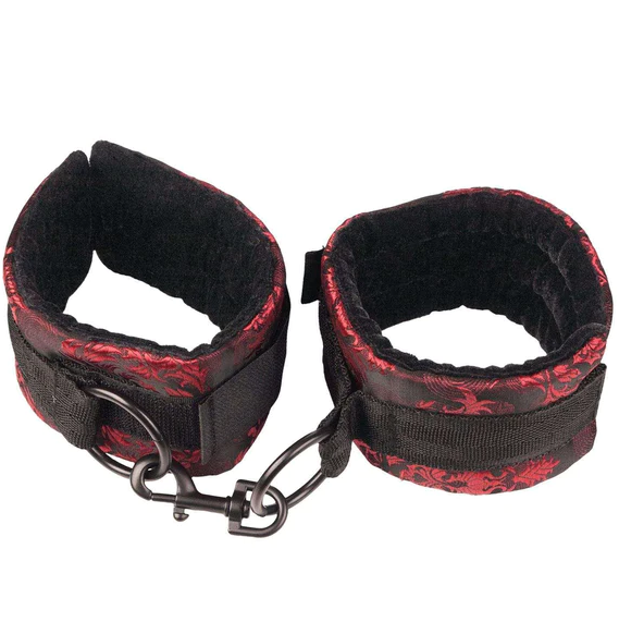 From California Exotic Novelties new Scandal line. Everybody wants to be a little naughty. Scandal Universal Cuff. Totally adjustable cuffs with Velcro style closures for use on wrists or ankles. Soft and plushy on one side, with designer fabric on the other. Universal clasps and O-rings with swivel design. Safe and pure for body and pleasure. Made using phthalate free, non-toxic materials: Polyester fabric, Velcro, Polypropylene PP straps, Nickel free iron rings, Nickel free Alloy clasp. Cuffs adjust up to 14 inches. Bulk Weight: 2.9 ounces. Instructions on the back of package in five different languages: English, German, Spanish, Russian, French. Category: More Fun, Fetish, Cuffs & Restraints. Scandal is a registered trademark for California Exotic Novelties. Sex toys and sexual wellness.