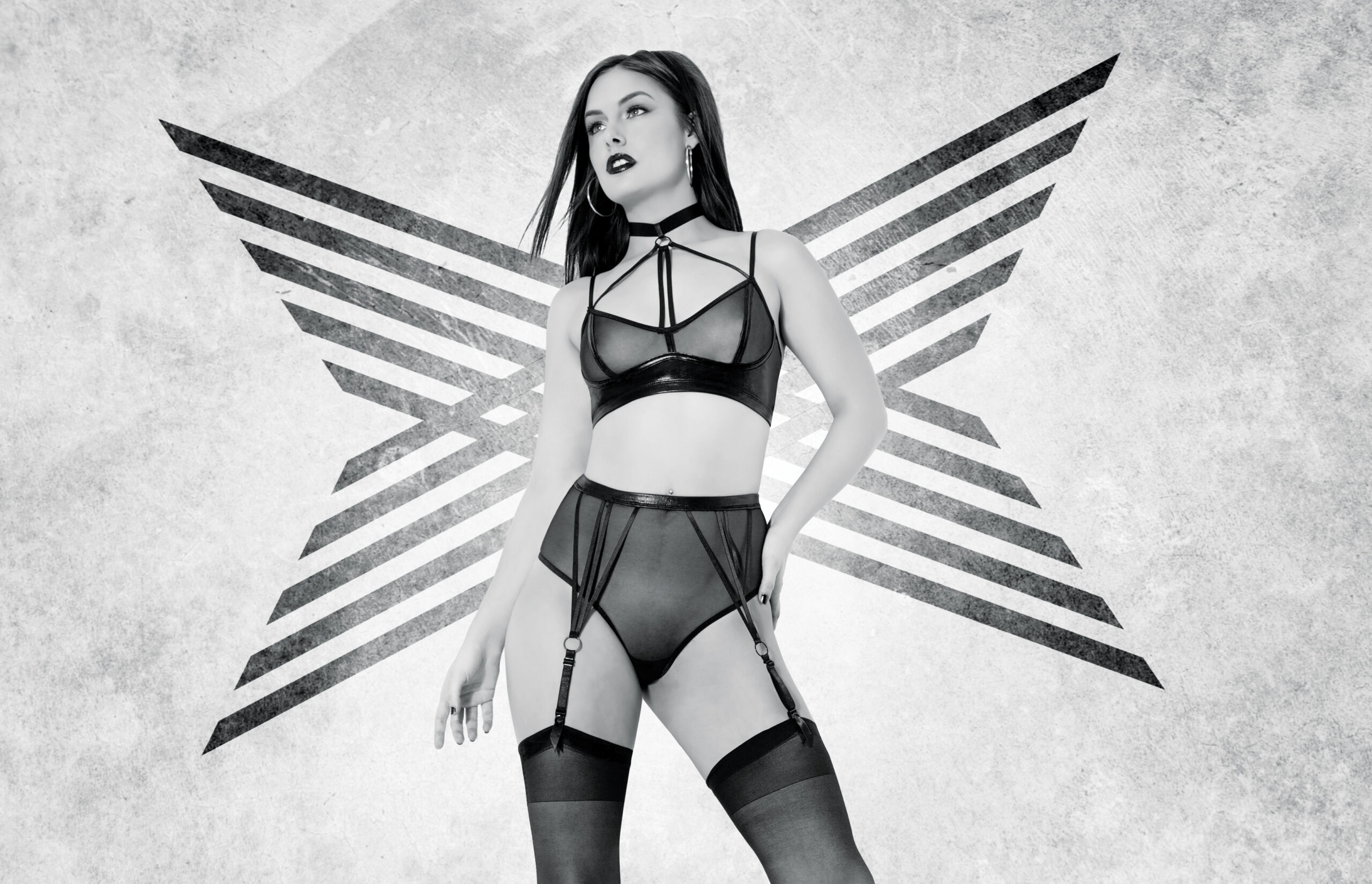 • See-Through Wetlook Bra & Garter Panty