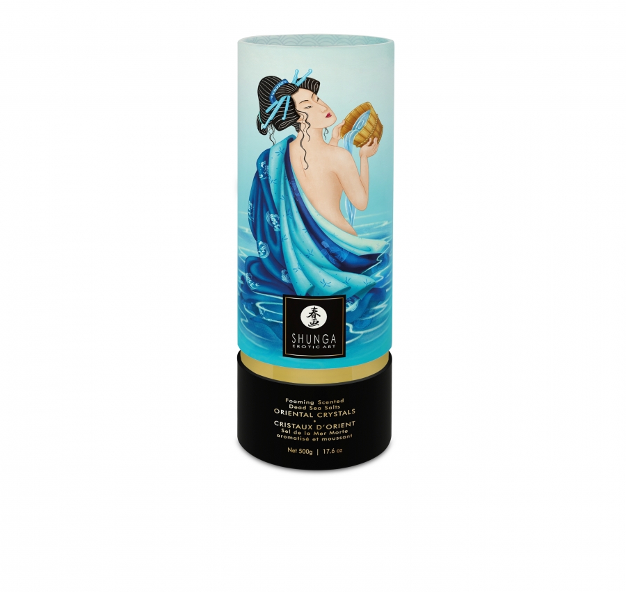 Use these aphrodisiac green lagoon bath salts, velvet bubbles, and mood-setting candle to create an oasis of relaxation.