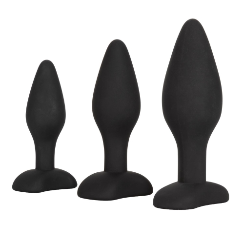 Open the door of thrilling anal sensation with the Silicone Anal Exerciser Kit . This kinky kit includes a set of 3 graduated anal plugs let you safely and comfortably increase passionate anal stimulation. To enjoy everything the exhilarating world of anal play has to offer, training is in order to ensure total safety and satisfaction. Each probe in our kit gradually increases in length and girth for superb pleasure at any level of pleasure play.