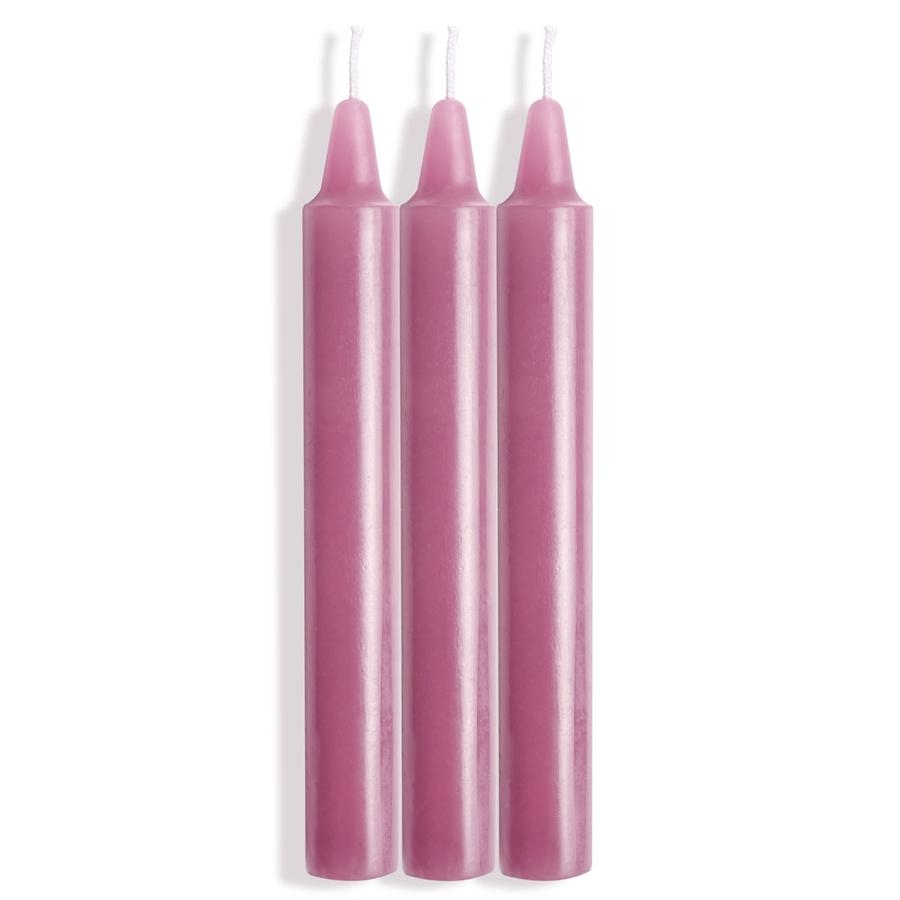Paraffin, violet pillar candles for melting, sensation play and massage. Each candle burns 90 minutes. Unscented. Handmade. Non-staining. Paraffin wax is an emollient and is used to soften skin. It’s made from petroleum products and transfers heat well too. The heat transfer opens pores and soothes sore muscles.
