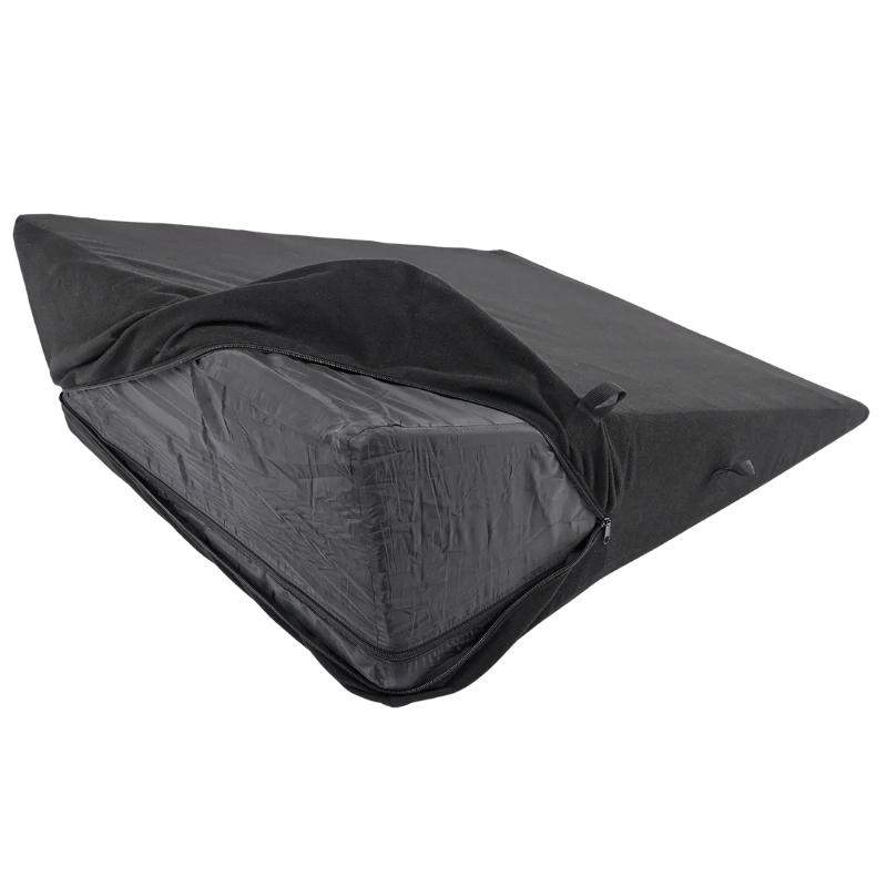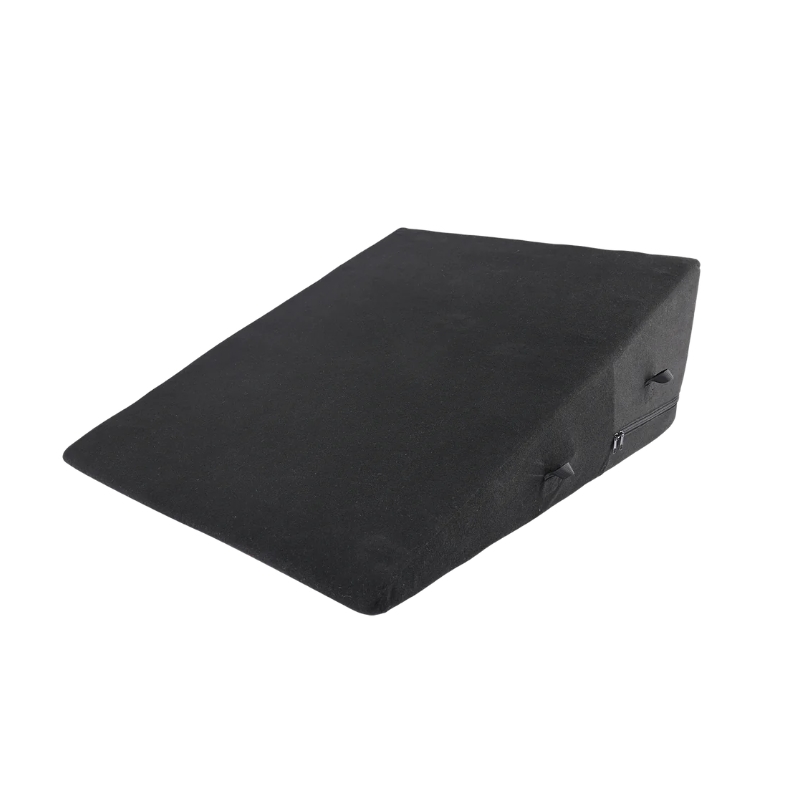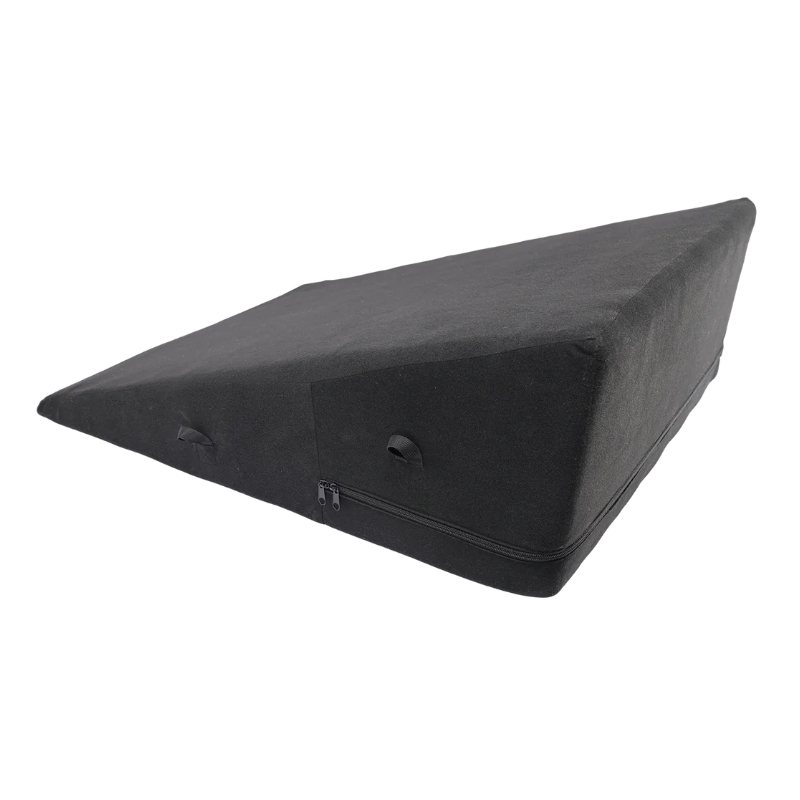 Introducing the Pivot™ Positioner Plus, a revolution in intimacy and support. This larger, ramp-style design offers enhanced comfort and versatility, crafted with a soft, flexible, high-density foam core to reduce fatigue and increase stamina for every body type. With looped webbing on each side, indulge in added support or excitement by incorporating your favorite restraints.