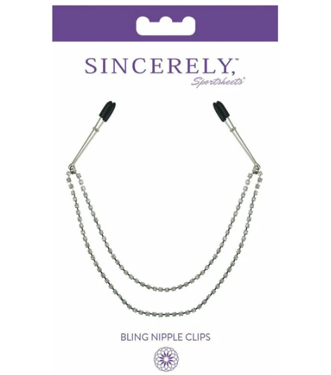 Drip yourself in diamonds with the bling bondage nipple clips from Sincerely by Sportsheets! These tantalizing jewels will have your lover in a trance while you just get to sit back and enjoy the pleasure and pain. The tweezer-style clips are fully adjustable so you can control the amount of stimulation you desire. Complete with a rubber coating and body-safe material, enjoy a secure experience during vigorous play.