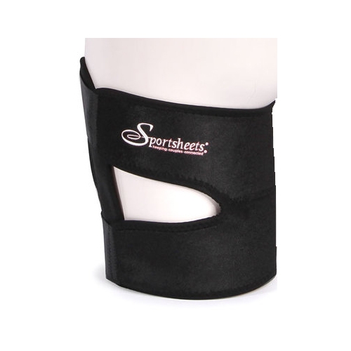 Thigh one with the versatile strapon. For use as a thigh strap on or wrapped around a pillow, this neoprene, Velcro adjustable harness adjusts up to 24′. Fits any flared base element. Dildo sold separately.