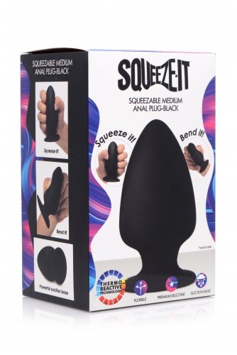 Available in 3 sizes, this squeezable, bendable butt plug makes insertion easy and fun! This state-of-the-art anal accessory is ultra-flexible so that it can conform to your demands. Enjoy the classic spade shape with its wide bulb, or squish it into a more tapered design that slides in with ease. Made with Thermo-Reactive Technology, it can be cooled down in a refrigerator until you are ready to use it, making it chill and hard, or it can be heated in a microwave or boiling water to make it warm and comfortably pliable. Suction down the base to a smooth surface for a hands-free penetration. The premium silicone material is non-porous and phthalate-free, but not compatible with silicone lubricants. Clean after use with mild soap or toy cleaner. Made with a patented revolutionary formula for a realistic feel.