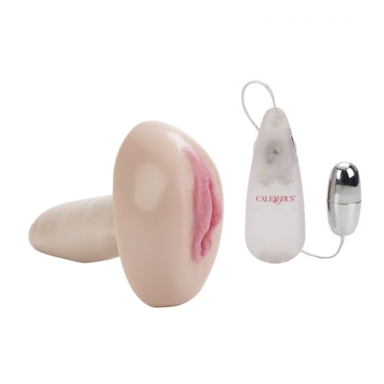 Explore your wildest erotic fantasies with the Sultry Vibro Pussy. The realistic personal masturbator is hand painted and detailed for a tantalizing life-like experience every time. The soft and smooth love tunnel features a superior textured sleeve and stimulating vibration action, for the ultimate sensual ecstasy. The compact masturbator is made from unscented Better-Than-Real anti-bacterial PVC and has a soft real feel. The sculpted vagina has a pleasurable tight opening and a textured sleeve for maximum sensitivity and heightened pleasure. The pliable pussy features a removable silver-plated stimulator bullet that slides into the sleeve for intense multi-speed vibrations. The teardrop shaped controller puts you in full charge of your orgasmic arousal and climax. Simply select your preferred pleasure pace and enjoy the unforgettable experience. The pussy measures 5.5”x 3”/14 cm x 8 cm and requires 2 AA batteries to power up the intensified exotic fun. The stroker is easy to use and perfect for first time and experienced users who want to explore fantasy play. For maximized sensitivity and extended arousal, always use a quality lube with this toy. Before and after every use, remember to clean the pussy with a toy cleaner spray.