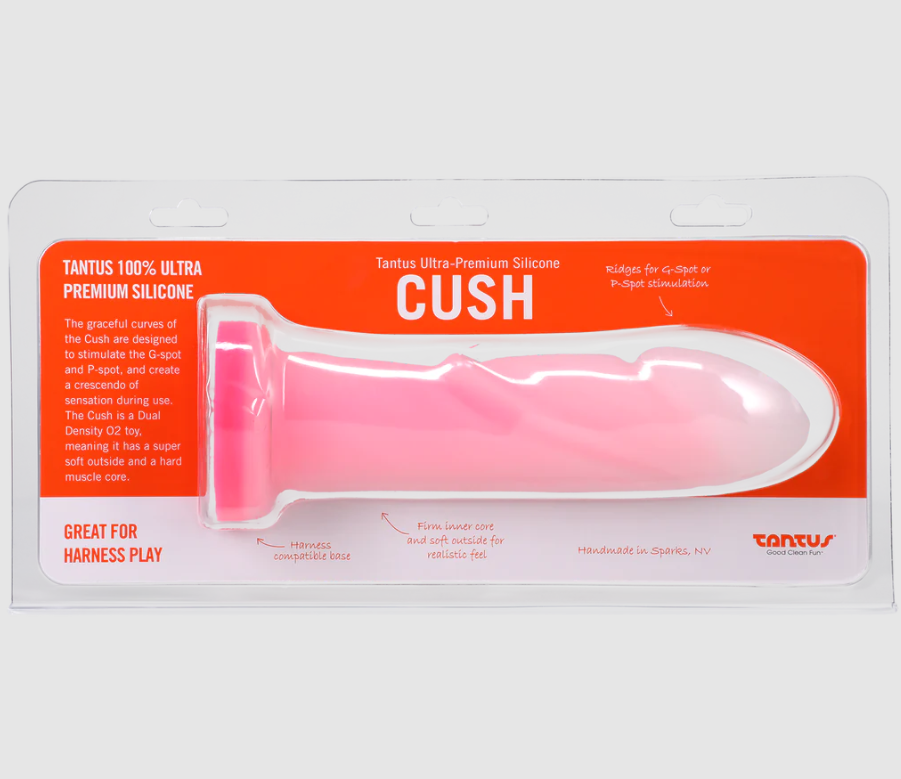 The graceful curves of the Cush are designed to stimulate the G-spot, and create a crescendo of sensation during use. The softer outer layer coupled with the brightly-colored firmer core makes this one of the most comfortable dildos in the Tantus O2 line.