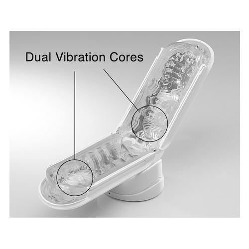 This is made possible with yet another TENGA-engineered first: two Vibrating Cores housed inside the elastomer.