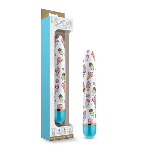Who knew pleasure could be this cute? The Collection vibe is a perfect gift for yourself or your lover. This limited-edition vibe will make you smile with joy with every use. The classic slim design is quiet, discreet, multispeed vibrations, and a smooth casing will deliver lots of sensation. Waterproof. Easy to clean. Body safe, and free of phthalates. Requires 2 AA batteries. (Not included.)