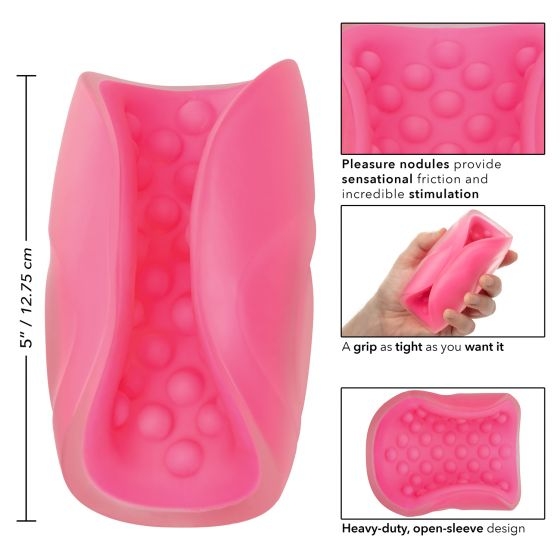 - Heavy-duty, flexible, open-sleeve masturbator