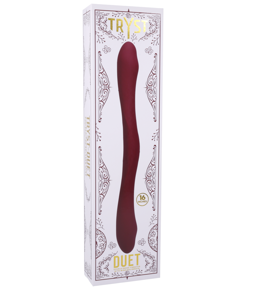Because each motor has its own button, one end can be powered off completely while the other is active, or each can be set to a different vibration pattern to enjoy any combination of the 10 powerful vibrating modes. The TRYST Duet is fun and easy to use with the wireless remote control and magnetic USB charging cable.