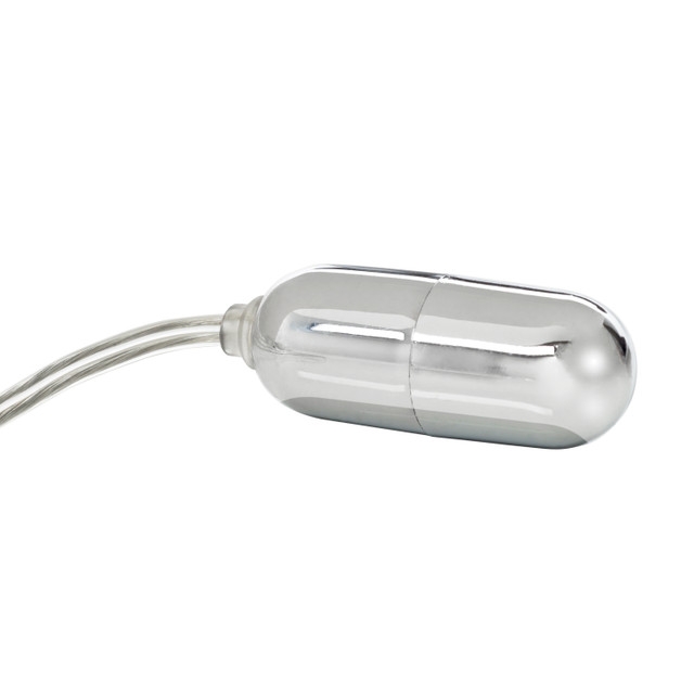 The sleek stimulator is made from silver-plated ABS and is attached to a slimline teardrop shaped, hand-held plastic controller, with easy-slide controls. The bullet measures a petite 2” x 1”/5 cm x 2.5 cm and delivers intensely pleasurable vibrating tingles and sensations, for ultimate internal and external satisfaction. The removable and reliable bullet can be easily inserted into the flexible sleeve of your favorite vibrating toy or used for direct stimulation.