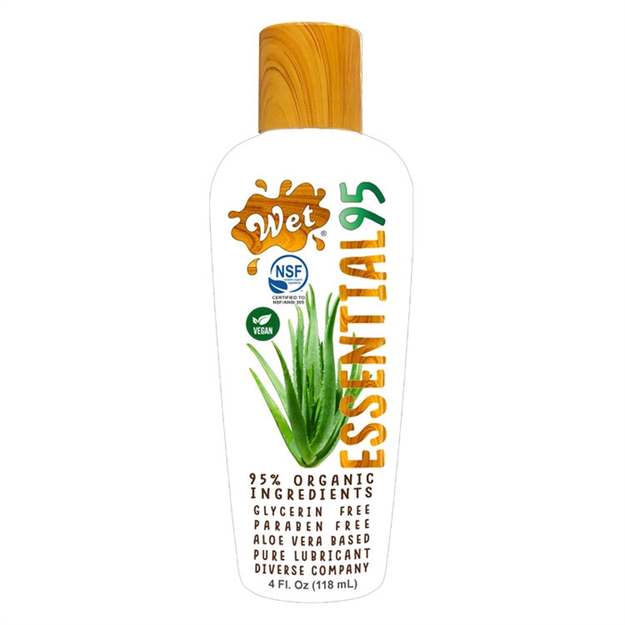 Wet Essential95 is our first Certified Organic product made using 95% certified organic ingredients. Our Aloe Vera base hydrates and moisturizes the skin, while the vanilla extract gives it a fresh and delicious smell and taste. Used consistently over time, chamomile extract has long been associated with a calm-ing effect, while Aloe Vera has been used for centuries to stimulate your sexual drive, improve blood circulation, and help you relax. Not only is Essential95 certified 95% organic, but it uses the highest quality vegan ingredients, leaving your skin feeling soft, rejuvenated, and never sticky.